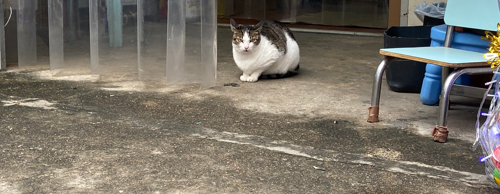 太冷了所以选择一条更迂回的路。坐地铁到东涌以后,坐公交车翻过山到大澳,大澳也很不一样,唯一相同的是走进居民区里仍然像是一座空城,在看到奇怪的装饰时,我心里会想着到底意味着什么,但大多数时候我看不见任何人,我心想人们到底去哪儿了,可能去一个崭新的地方度假,在心里质疑那些坐了两三个小时的地铁和公车来到这里旅游的人,这里有什么好看的呢?也许他们在家里哪儿也没去,他们心里想,节日,节日意味着什么?我的脑海中不断浮现Drive My Car看到的手语演绎的契诃夫台词,我们必须永不停歇,直到我们去了彼岸,告诉他我们曾经承受过的苦难。